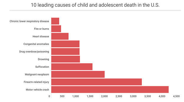 Here are the 10 leading causes of death for young people, from a New England Journal of Medicine study in 2018.